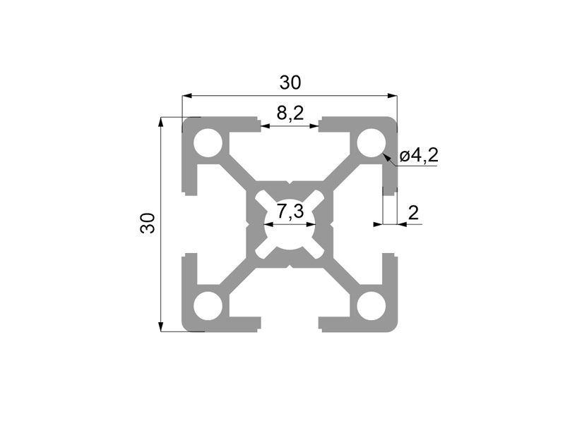 Zadání rozměrů a kalkulace ceny pro Hliníkový profil K3030