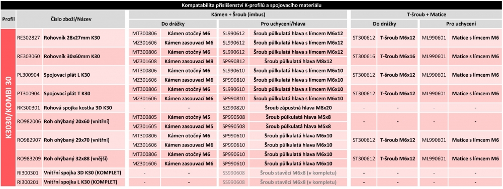 | Spojovací plát T K30 | 60,00 | | | 0,058 | | | PT300904 | hliník | ok |  |